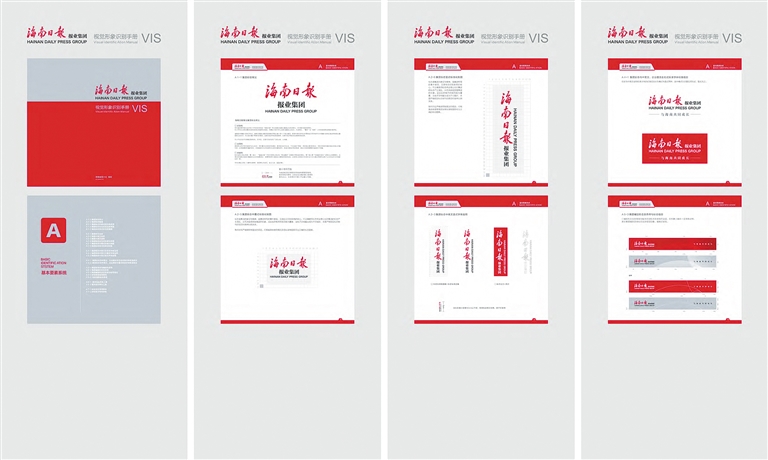 集团视觉识别系统项目建设团队还制定了海南日报报业集团视觉形象识别手册,对标识在不同情况下使用的反白效果图、标准化制图、中英文字体运用、色彩搭配组合等内容作出了详细规范。