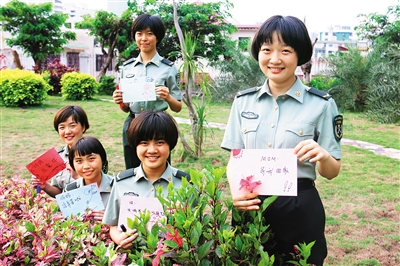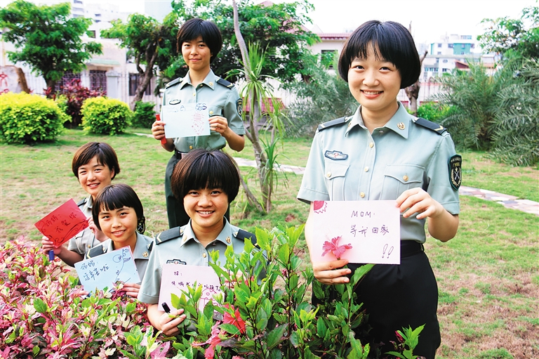 5月6日,在母亲节即将来临之际,坚守岗位的海南省军区某通信团女兵展示手写给妈妈的祝福语,她们以此方式来表达对母亲的感恩与关怀,致敬天下母亲,并送去节日的祝福。本报记者 张茂 实习生 蓝晴 摄