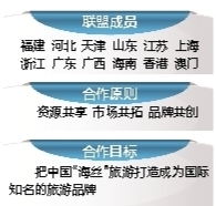 据了解,该联盟由福建、河北、天津、山东、江苏、上海、浙江、广东、广西、海南以及港澳旅游部门共同发起成立,主要为对接国家“一带一路”战略,主动融入21世纪海上丝绸之路旅游带建设,秉承资源共享、市场共拓、品牌共创的原则,通过资源整合、产品包装、形象宣传、联合营销等方式,促进“海丝”沿线地区旅游产品一体化开发和推广,推动联盟成员之间的区域互动与合作,最终实现把中国“海丝”旅游打造成为国际知名的旅游品牌的目标。
