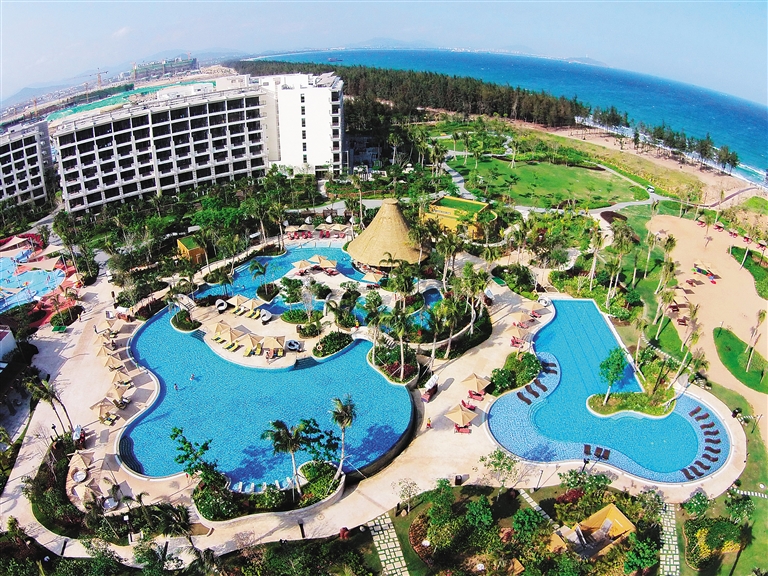 据悉,2014年底开业的三亚香格里拉大酒店,使海棠湾国家海岸酒店带开业的五星级国际品牌酒店达到了11家,总客房量达到4700间。2016年春节前,海棠湾滨海一线还将开业4家国际品牌五星级酒店,增加1000间客房量。 本报记者 武威 摄