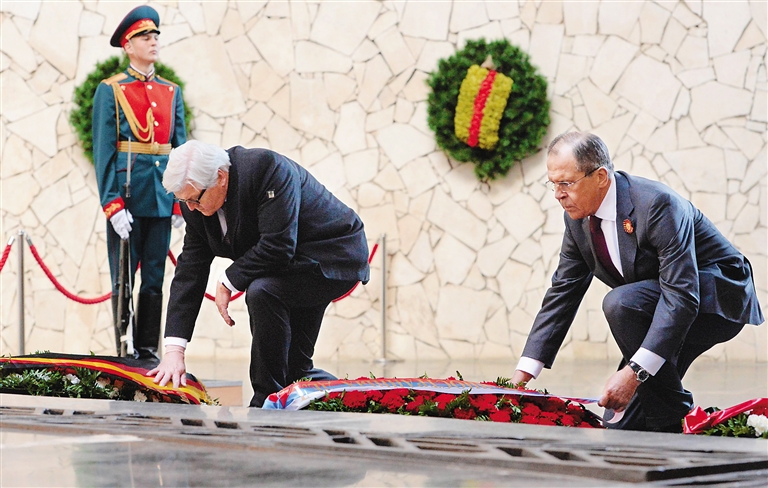 俄德外长向二战纪念碑敬献花圈