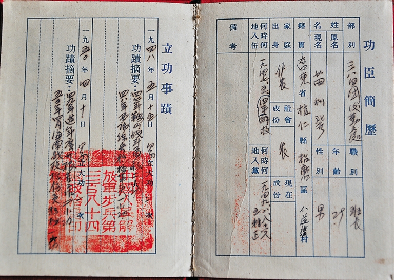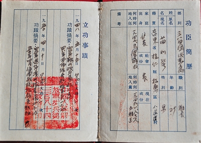 “父亲出生在一个雇农家庭,从小生活极度贫穷。”翻检着父亲留下的立功证明书,苗建中深情回忆起父亲苗立发。