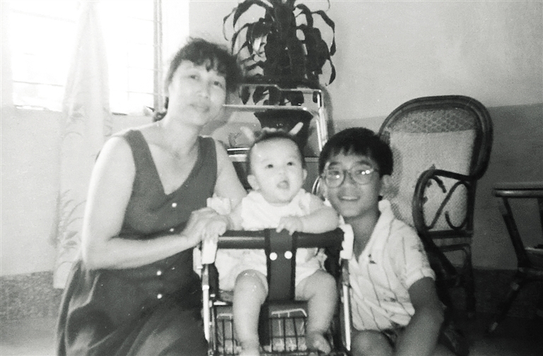 老照片(左下图)摄于1991年,那年,母亲崔彩燕40岁,小儿子蔡子力1岁,大儿子12岁。