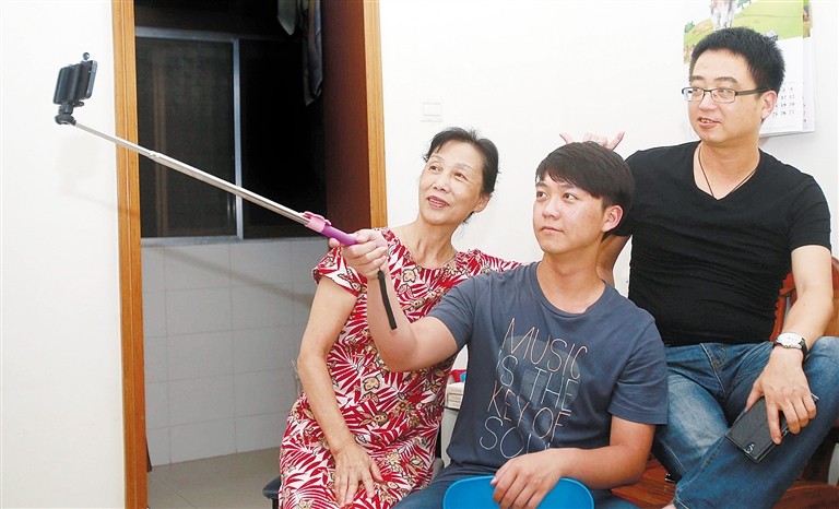 新照片(上图)是崔妈妈和两个儿子在同一地方合影,这时妈妈已经64岁。妈妈童心未泯,还记得在小儿子脑后比划24年前一样的牛角手势。 文\图 海南日报记者 李英挺