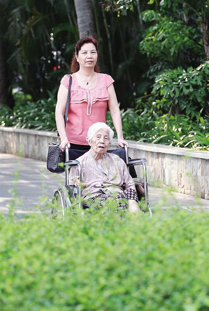 老照片(下图)摄于1977年,海口东湖老宅。那年,母亲陆喜南51岁,女儿毛玉媚18岁。最难忘的事情:那时没有自来水,全村只有一口井,经常是半夜和母亲一起到井边洗衣服。新照片(左图)摄于今年5月6日,女儿上班前用轮椅推着妈妈在海口东湖街心公园散心。今年,陆妈妈已经88岁了。母亲节之际,全家人最大愿望是陆妈妈早日康复、健康长寿!