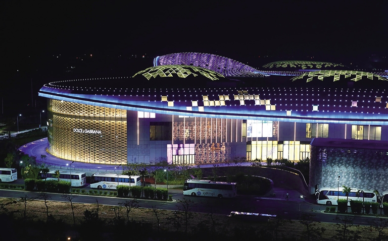 开发建设至今,海棠湾不断完善“吃住行游购娱”等旅游要素,打造“45分钟旅游圈”等“一站式”旅游平台,湾区已日渐成为家庭游、婚庆游等游客的首选。图为5月9日俯瞰三亚海棠湾夜景。本报记者 张杰 摄