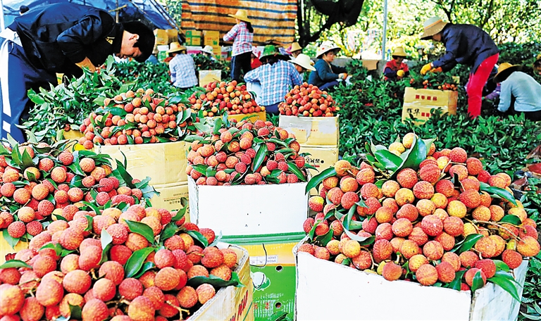 “日啖荔枝三百颗,不辞长作岭南人。”苏轼这一脍炙人口的诗句,让岭南的荔枝闻名天下。海南的妃子笑、糯米糍、无核以及荔枝王等品牌经过多年的培育,远近闻名。而近年来,随着社会经济的发展,国民的旅游休闲需求越来越火热,采摘荔枝,成了市民和游客喜爱的旅游休闲节目之一。每当荔枝成熟时,不少人喜欢邀三五好友,来到荔香浮动的荔枝林里,边摘边吃,追逐打闹。归家之际,还会带上几大箱几大箩,将这种新鲜美味的荔枝带回家,真是不枉此行。