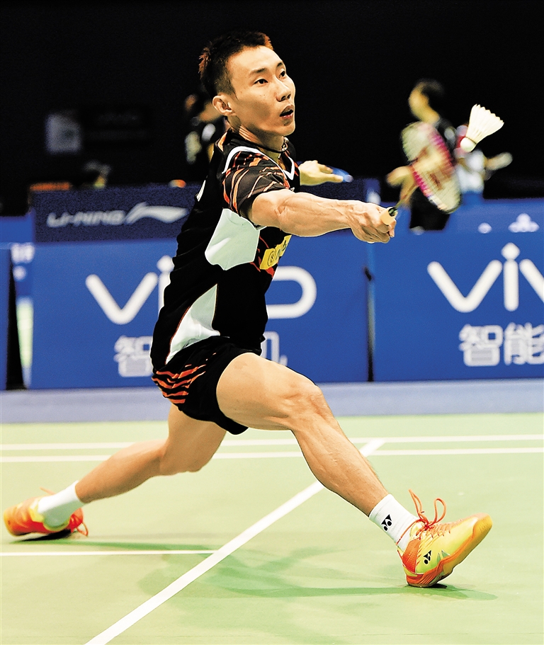 5月10日,马来西亚队选手李宗伟在比赛中。他在男单比赛中以2:0战胜韩国队选手李东根。去年八月世锦赛因药检不过关而禁赛8个月的李宗伟五月初解禁,苏迪曼杯是李宗伟解禁后的首场比赛。