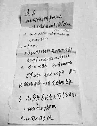 11日下午,在医院一间办公室内,记者看到了这封写在一张小小白纸上的遗书称,“不管赔偿多少到位,先抽3万给xx的母亲做生活开支。除一切费用外,剩余的现款给xx兄妹二人平分。办丧事总费用不超过3万元,不唱戏,不搞乐队,时间不超过5天。”