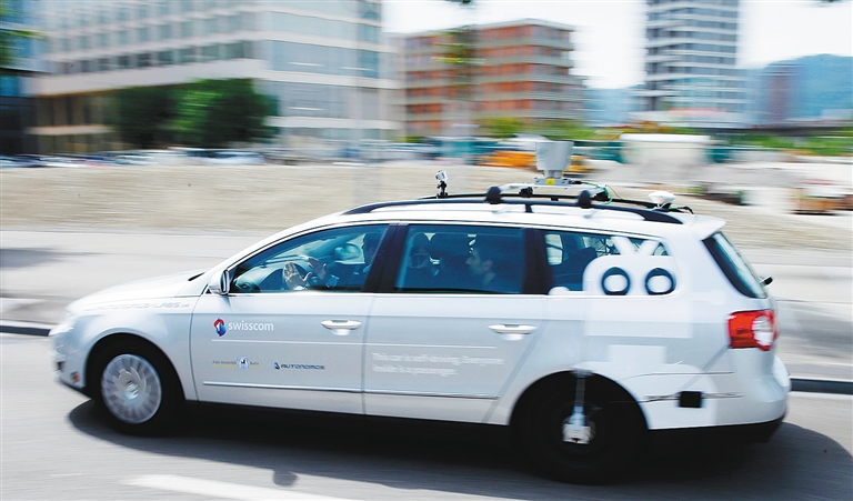 5月12日,在瑞士苏黎世,瑞士首辆自动驾驶汽车AutoNOMOS在路上行驶。 当日,瑞士电信公司展示其参与研发的瑞士首辆自动驾驶汽车AutoNOMOS。新华社/路透