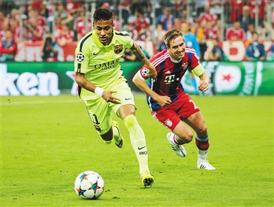 图为巴塞罗那队内马尔(左)在比赛中突破。新华社发