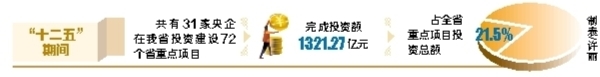 据统计,到2014年底,在海南的中央企业达到了216户,资产总额1481亿元,实现利润87亿元。“十二五”期间,共有31家中央企业在我省投资建设72个省重点项目,完成投资额1321.27亿元,占全省重点项目投资总额的21.5%。