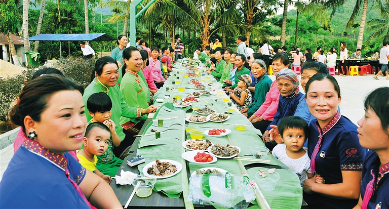 据了解,番庭村是黎族村庄,村内道路整洁,村民团结互助和谐相处,是保亭美丽乡村建设中的先进典型。今天,村民们每户做一道菜,招待远道而来的客人。本报记者 易建阳 特约记者 黄青文 通讯员 黄秋娜 摄