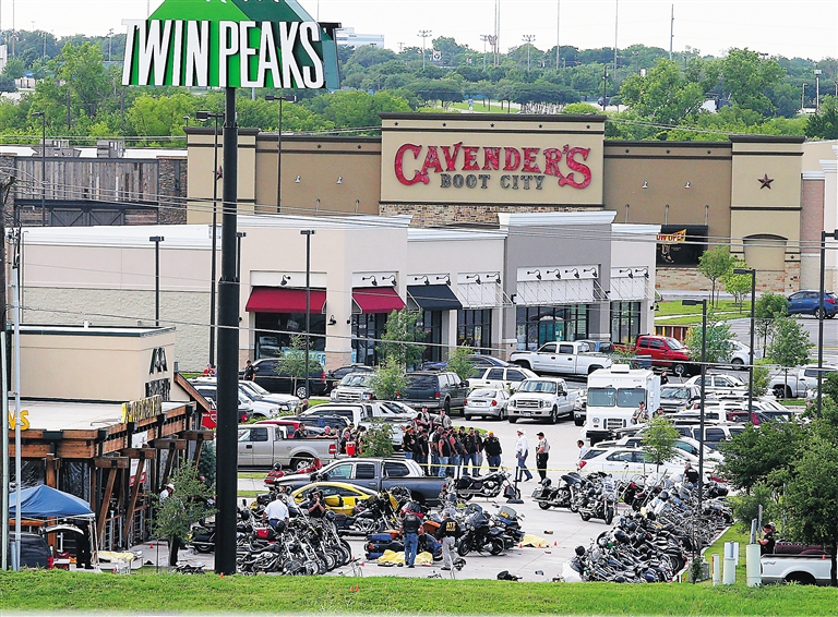 为阻止事态进一步恶化,事先已获取情报并在餐厅外警戒的12名韦科市警官和一些得州警察部队官兵果断向混战的帮派成员开枪射击。