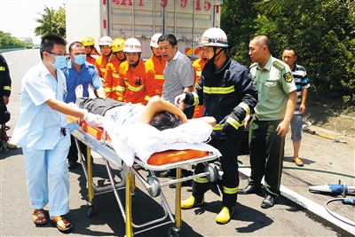 现场医护人员及时对被困人员采取输氧措施,而消防官兵则按原定方案,加紧对车门、驾驶座位等部位进行破拆。终于在13时32分,成功救出被困人员,并在现场医护人员的帮助下转移至120救护车。目前事故还在进一步调查当中。