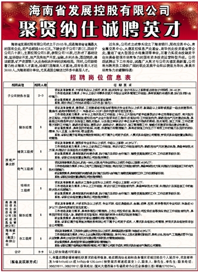 海南省发展控股有限公司聚贤纳仕诚聘英才