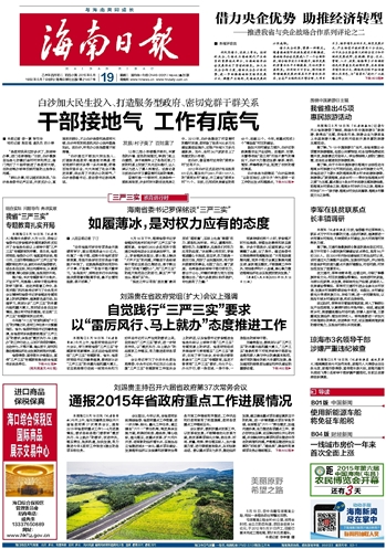 海南日报 头版 001 2015-05-191 2015年05月19日 星期二