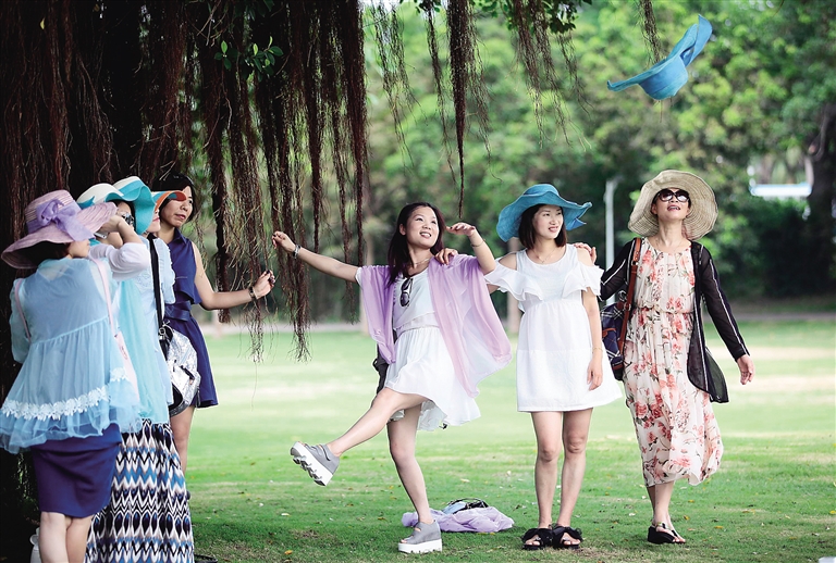 当日是第五个中国旅游日,今年的活动主题是“新旅游,新常态”。海南三亚南山、大小洞天、天涯海角、亚龙湾热带天堂森林公园等多家景区纷纷推出丰富多彩的优惠活动,让市民游客游览三亚热带风光。本报记者 武威 特约记者 陈文武 摄
