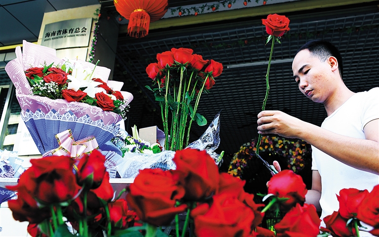 据了解,5月20日,因其谐音“我爱你”,被称为“表白日”,正因为这样美好的寓意,许多人选择用鲜花在这一天表达爱意。当天,海口花市持续火爆,玫瑰、百合等鲜花价格都有一定幅度上涨。