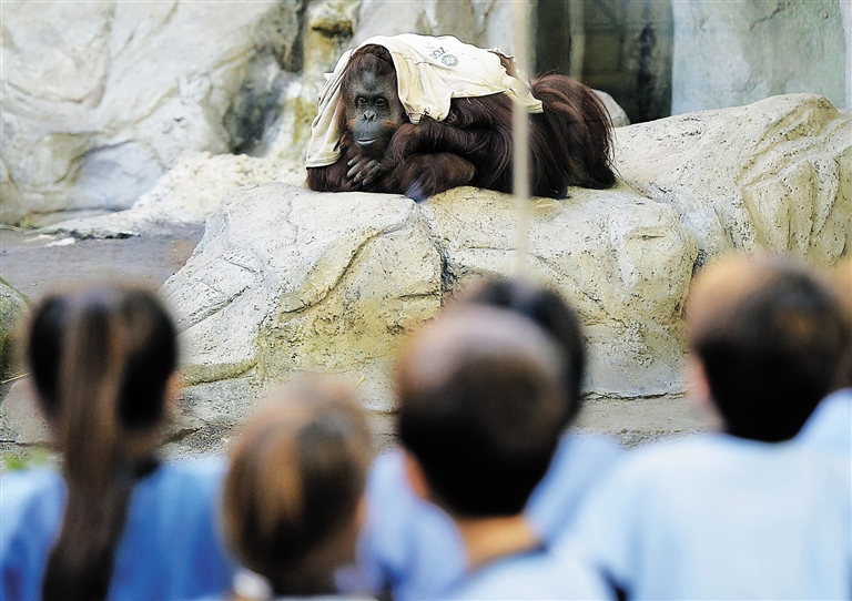5月20日,在阿根廷首都布宜诺斯艾利斯动物园,孩子们围观红毛猩猩桑德拉。 近日,阿根廷一家法院认定29岁的雌性红毛猩猩桑德拉“应该享有更舒适的生活条件和更大的自由”,桑德拉将离开其生活了20年的布宜诺斯艾利斯动物园,可能被送往巴西一个灵长动物保护区。桑德拉由此成为全球首个拥有“人权”的红毛猩猩。 桑德拉1986年出生于德国一家动物园,1994年“移居”阿根廷。在动物园里,桑德拉经常尝试躲避参观者。阿根廷动物权益专业律师协会2014年向法院递交人身保护令申请,认为桑德拉遭到“不正当监禁”,应当享有一些原本只属于人的基本权利。 新华社/法新