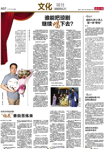 “老师们带领我走上艺术之路,我也希望能把琼剧艺术传承下去!”符传杰坦言,喜获“梅花奖”是自己追求艺术道路上的转折点,是一次新的开始,他肩上的担子也更重了。今后他不仅要提高自身能力,还将和其他琼剧演员一起发扬创新琼剧,协力在广阔的中国戏剧舞台上,唱响琼剧!