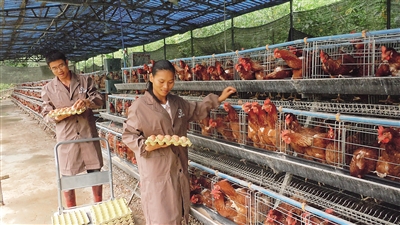 位于屯昌县乌坡镇偏南一隅的陈君夫妇的养鸡场,占地约35亩,鸡场里养着2万只蛋鸡,每天都有7000多个鸡蛋外销。