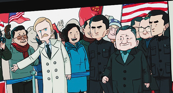 至于接地气的另一种方法,则是动画元素的加入。本片的主旨是呈现出那九天时间里邓小平在美国的行程,但是镜头能拍到的,毕竟只有一部分。对于那些没有拍到的内容,影片以动画的形式来呈现,这也让本片在众多泛黄的历史画面当中显得活泼生动许多。而且,这也是首次在大银幕上出现邓小平这样的国家领导人的卡通形象,对于电影艺术的创作者而言,也是一个巨大的进步。