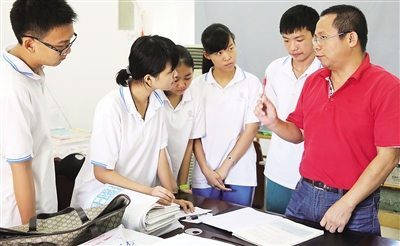 今年51岁的蔡汉雄已从教28年,自2005年调至海南华侨中学任教以来,带出的两届毕业班都成绩斐然:2014届高考,他的班一本率100%,高考分800分以上的5人,综合分800分以上的14人,全省前十名,他的班上就占了4人,其中,吴湘雨同学位列全省第一名。
