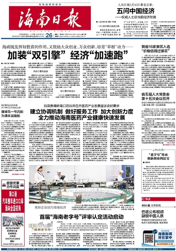 海南日报 头版 001 2015-05-261 2015年05月26日 星期二