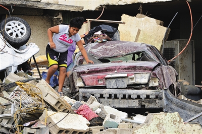 一些照片显示,几辆汽车被龙卷风刮入居民家里,孩子们不得不攀越汽车才能在家中走动。