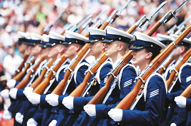 5月25日,在美国华盛顿宪法大道,仪仗队士兵参加阵亡将士纪念日游行。 每年5月最后一个星期一是美国阵亡将士纪念日,也是美国联邦法定假日。美国多地举行活动,缅怀在历次战争中牺牲的将士。 新华社记者 殷博古 摄