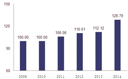 2014年,海南国际旅游岛旅游服务分项指数135.28,比2013年增长8.46,2009-2014年指数年平均增长率为6.23%。其中,推动海南国际旅游岛旅游服务分项指数稳步提升的核心影响因素之一是旅行社数量。2009年以来,入驻海南省的旅行社数量快速提升,其发展水平远高于全国。2014年,海南省拥有的旅行社数量为393家,约为基期的1.89倍。