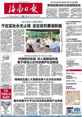海南日报 头版 001 2015-05-281 2015年05月28日 星期四