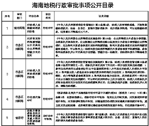 海南省地方税务局关于公开行政审批事项目录清单的公告