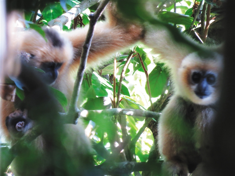 海南长臂猿家族 又添一新成员