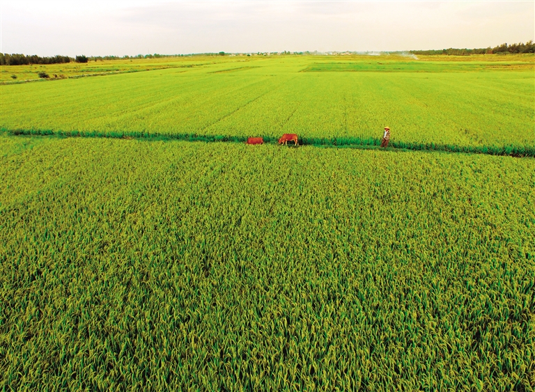 据了解,儋州投入中央、省、市三级财政资金,今年1月份开始动工整治福南洋农田,于4月份竣工,整治农田面积1.95万亩,硬化灌渠道266条106公里,大大地改善了农田的灌溉和排涝功能,提高了农田的产值。 本报记者 陈元才 特约记者 谢振安 摄