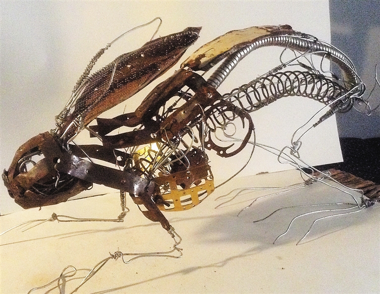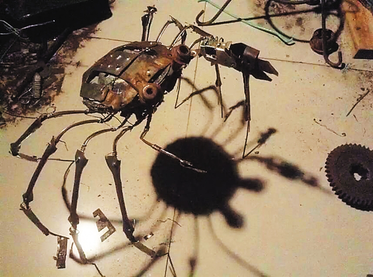 “我可以用我的双手让金属垃圾以另一种形式活着。”何明说,自己的快乐源自每天能够操作安放自己“童心”的创作,而且很热衷于回味每一个“重生”艺术品曾经的故事。