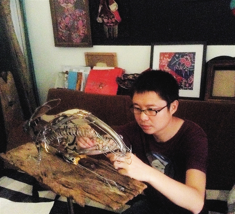 何明想做的事情很特别,就是用“捡来的垃圾”创作艺术品。何明觉得,这样既可以安放自己随时迸发出的灵感,也非常符合国家提倡低碳、绿色的理念。“我只是纯粹地喜欢创作,喜欢享受过程,能做自己喜欢的事情就是很幸福的。”