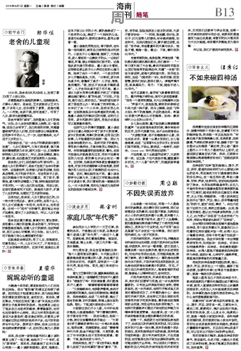 | 海南日报 随笔 025 2015-06-011 2015年06月01日 星期一 |