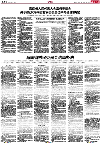 海南省人民代表大会常务委员会关于修改《海南省村民委员会选举办法》的决定