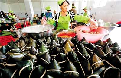 儋州无处不粽香,这意味着粽子产业发展潜力巨大。该市“广和粽”、“美乐美”、“五色粽”、“五哥粽”等30多家具备常年生产能力的粽子厂家,无不是一派繁忙景象。据儋州市商务局统计,2014年该市粽子产业直接带动就业人数在1万人以上。