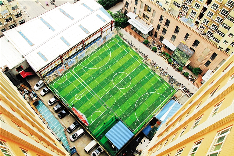 郑州闹市现“楼顶足球场”
