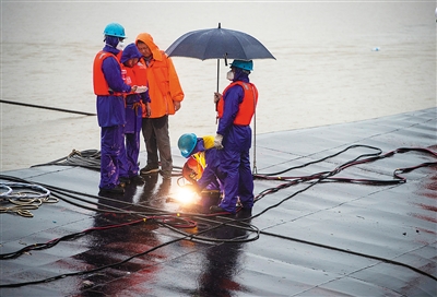 在船体切割救援方面,救援人员在船体上划定了3处切割区域,这些区域是船内通道比较集中的地方,也是逃生的重要通道。救援人员经过仔细测量和探测,对船体切割出多个孔洞,持水枪向长江中排水,同时用气焊在船体底部划出一平方米左右的长方形的探孔,进行最后的生命探测。在确认未发现生命迹象,救援人员又迅速将其封上,以保证船体内遗体的完整性。