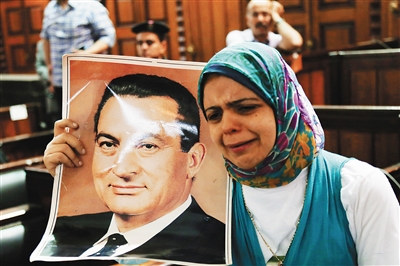 6月4日,在埃及首都开罗,一名手持穆巴拉克画像的妇女在法庭上哭泣。 据埃及官方通讯社中东社4日报道,埃及最高上诉法院当天宣布,接受检方对穆巴拉克在谋杀示威者案中无罪判决的上诉,将于11月5日重审该案。 新华社发(穆罕默德摄)