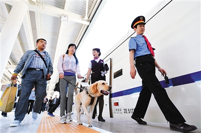 导盲犬首次乘坐兰新高铁