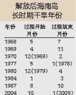 根据该指标进行排查,1966年至2012年长时期的干旱过程有8次(见下表)。平均来看,这些长时期的干旱过程出现的频率接近是6年1遇,低于强台风和致洪暴雨。这与海南的热带湿润气候是相一致的。(刘贡)