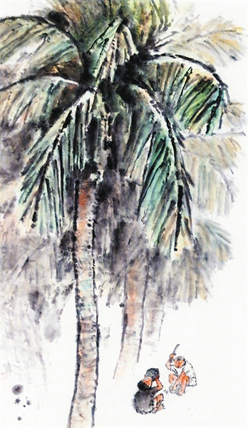 “故国清明好胜游,临风我每忆崖州。”当笔者站在展厅环视崔先生所有的作品时,心底不禁浮起了他的同乡、同行卢鸿基先生的诗句。从崔先生笔下那一株株茂盛、挺拔的椰树中,笔者由衷地感觉到了不一般的热情和亲切,也强烈地体会到了崔先生对故土的浓厚思念。崔开宏先生颇感自豪地对故乡的观众表示:“我作为琼海籍的作者,在北京中国美术馆举办作品展应该是第一个,希望今后有更多琼海籍的美术家来京办个展。”