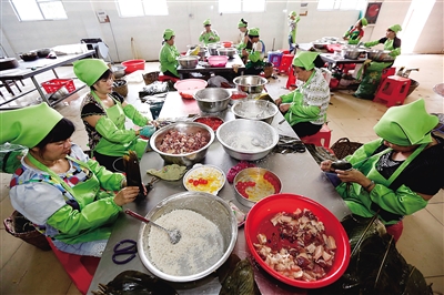 作为客家风情村,力乍村秉承客家传统,形成了一套完整的制粽程序。