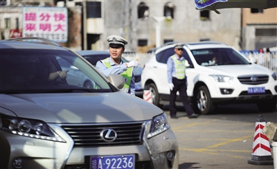 6月7日下午,地表气温高达48摄氏度,交警正在维持考场秩序。