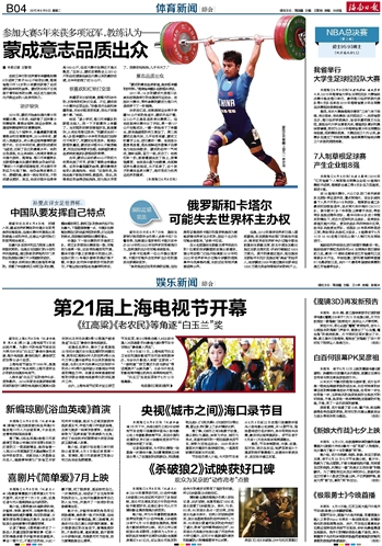 海南日报 体育新闻 娱乐新闻 016 2015-06-091 2015年06月09日 星期二